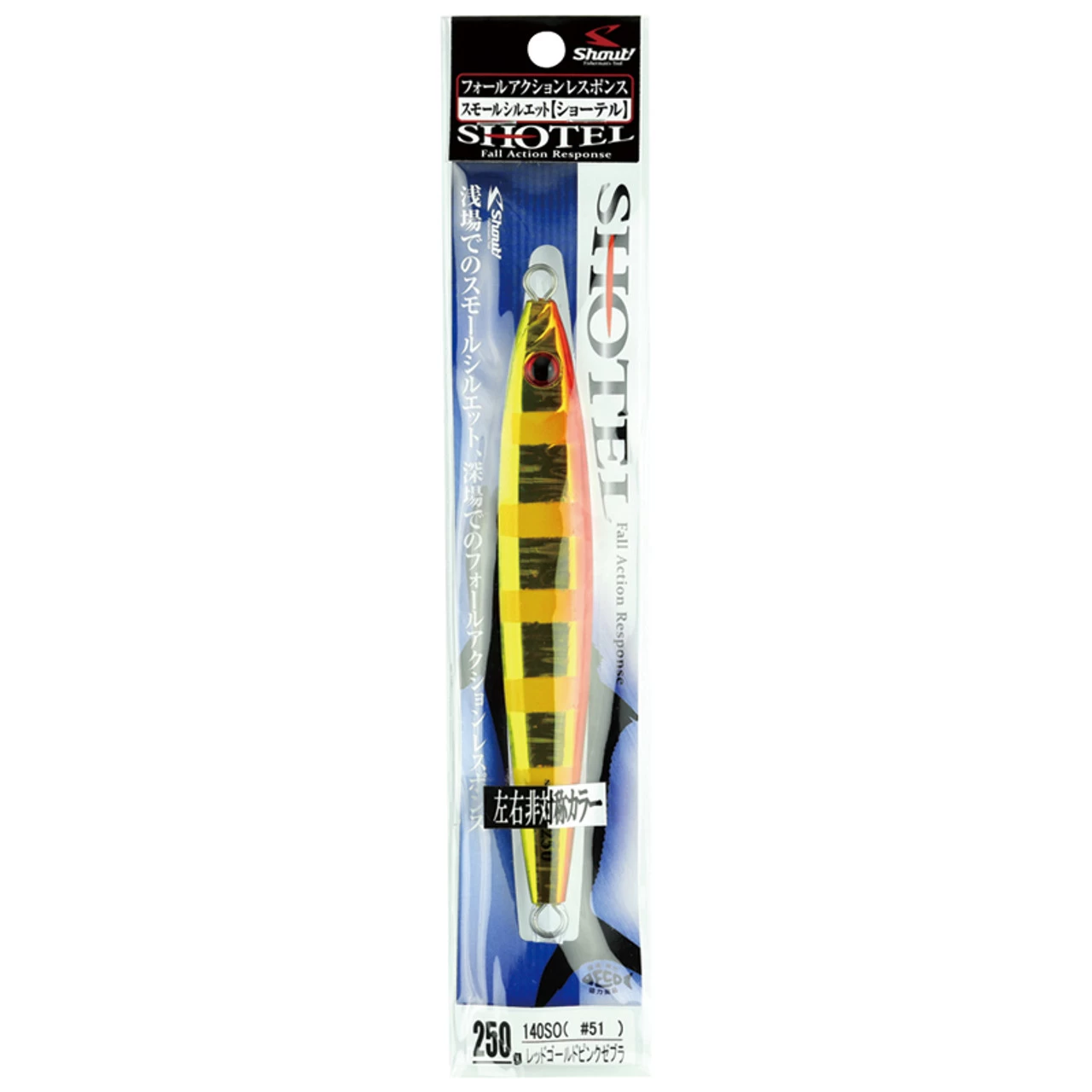 The Shout Shotel is a cousin to the Lance jig, but with more thickness. The jig has a cradle fall action with a back and forth action that helps trigger the bite. As a semi-long jig it is a perfect solution for fish actively feeding but not biting on a long jig or when a short jig is not reaching bottom fast enough. The Shotel uses its cradle fall as a weapon to make a nervous target with a short small silhouette in shallow water. In the deep, the thick body decreases the influence of the leader and the main line, and the cradle fall is easy to sustain. Suitable for all jigging styles including slow pitch and high speed jigging, the Shotel is one of the most versatile jigs in the Shout lineup.
