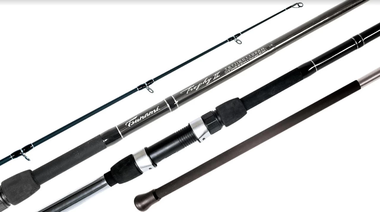 The Tsunami Trophy Surf II rods were newly redesigned to bring together performance and value. Made of a lightweight graphite, these rods have an ideal action for tossing a wide variety of lures such as plugs, tins and bait. The shrink wrapped handles show of the thin diameter of the rods, while the graphite cushioned reels eat allows for painless casting for hours. The rods are also built with tangle free guides, for hassle free casts with thin diameter braided lines.