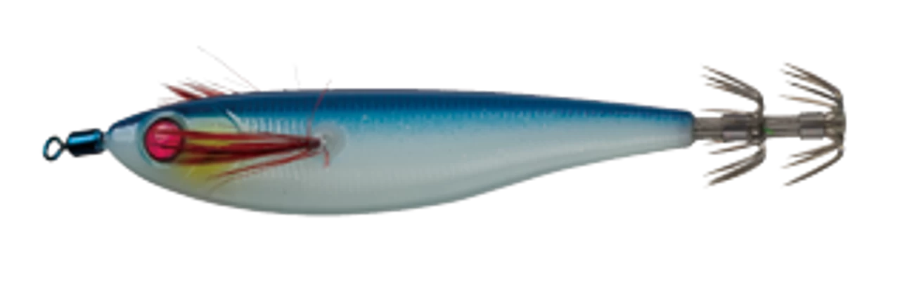 The Yamashita ToTo Sutte R WS95SB “Super Bright” is a squid jig that is 95mm (~3-3/4 in.) long. This model features a highly luminous plastic body.